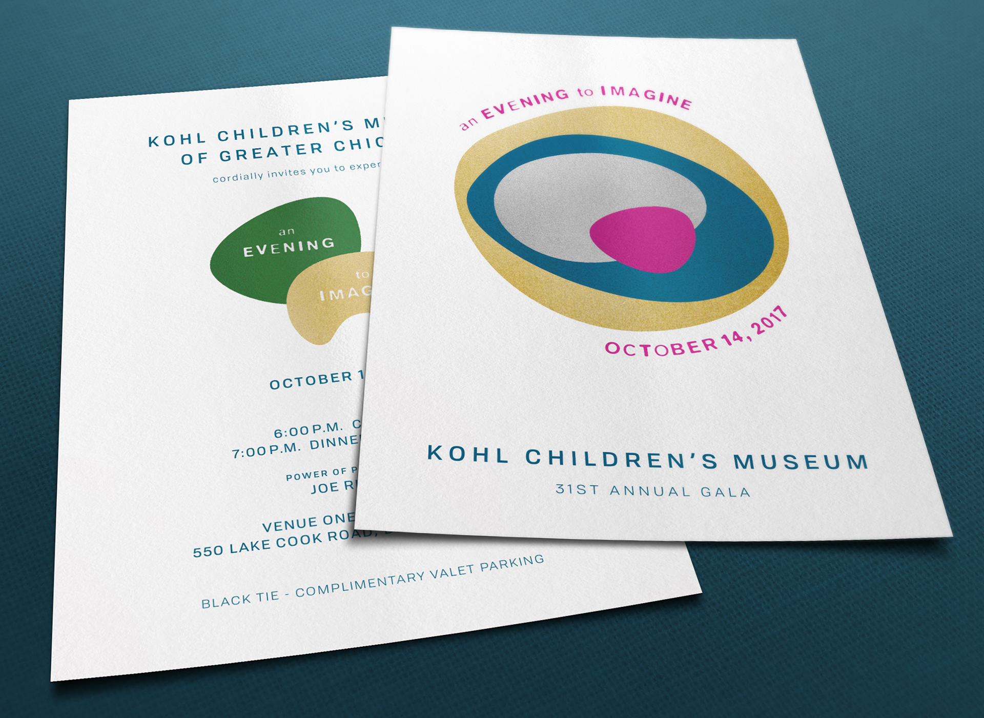 Design identity for an upscale fundraising gala at Chicago's Kohl Children's Museum.