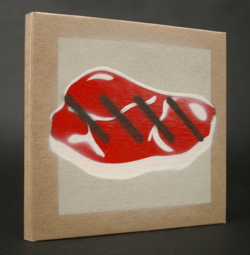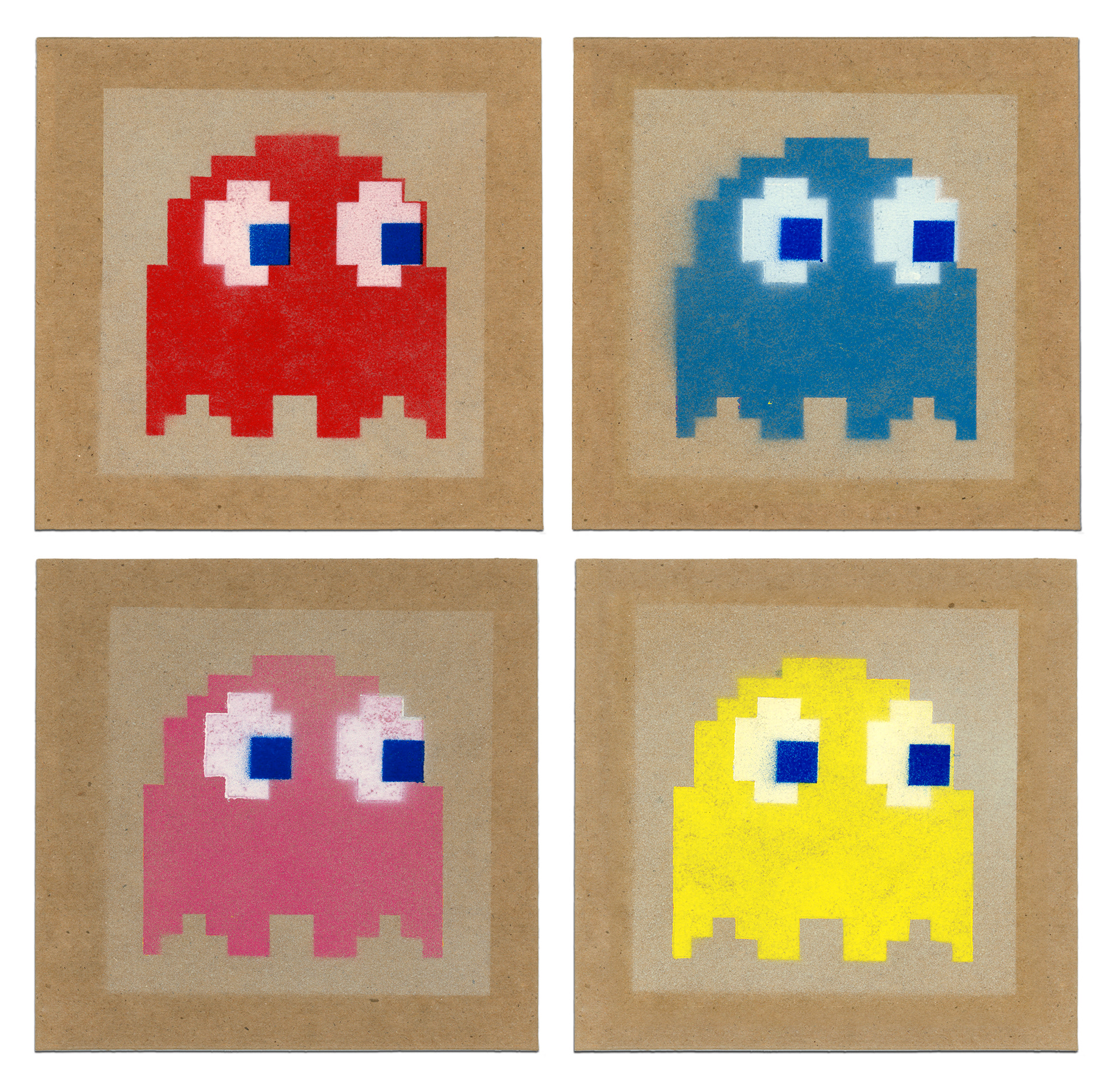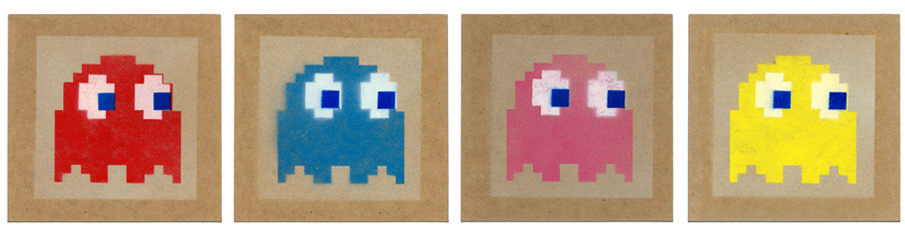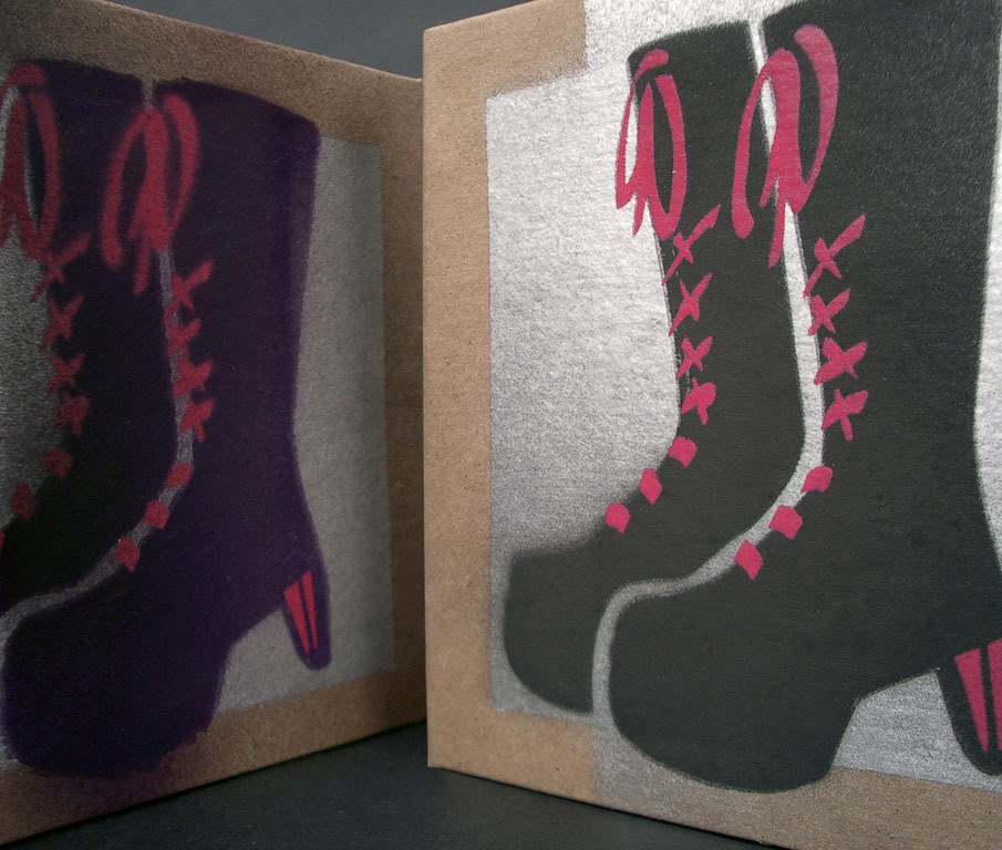 Graphic illustrations created with stencils and spray paint.